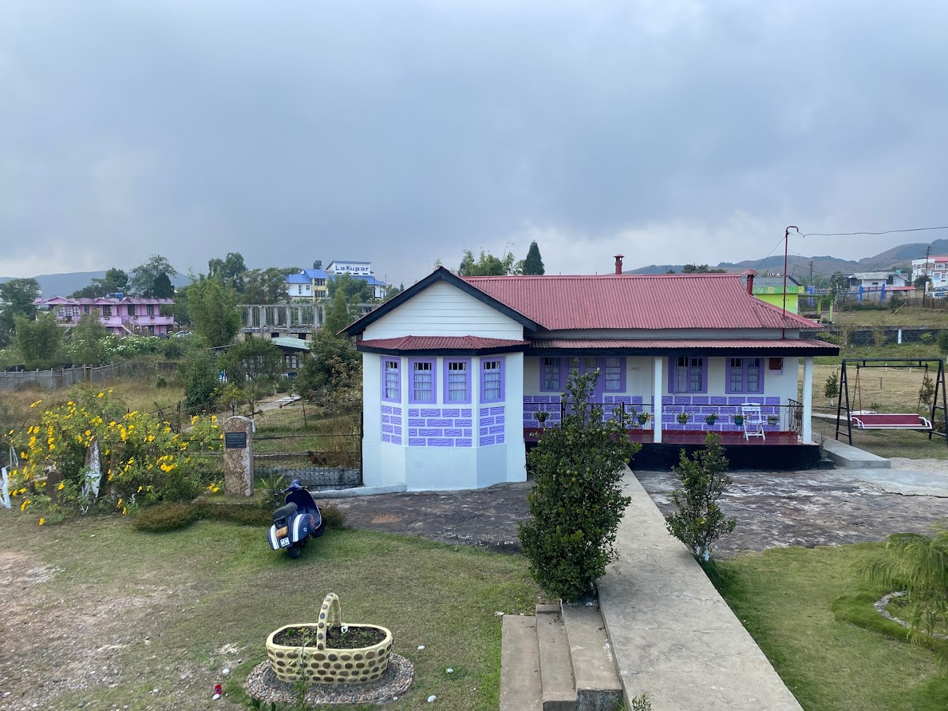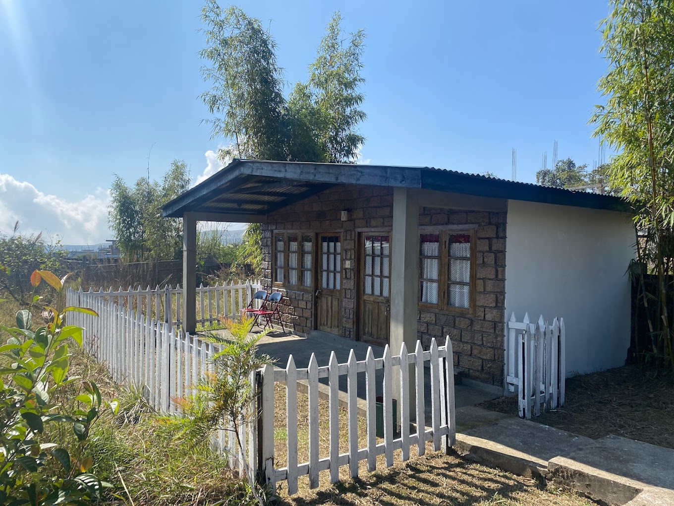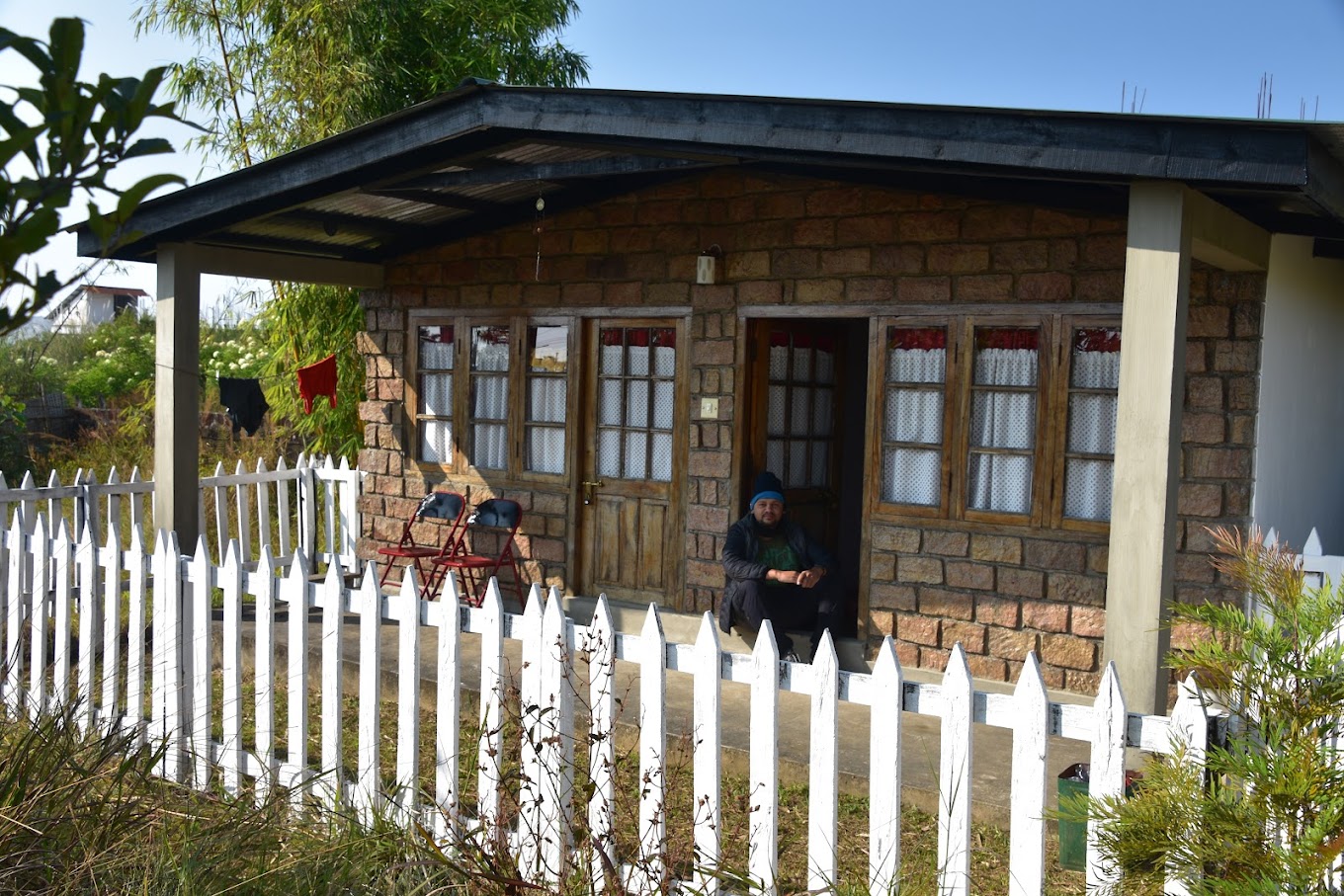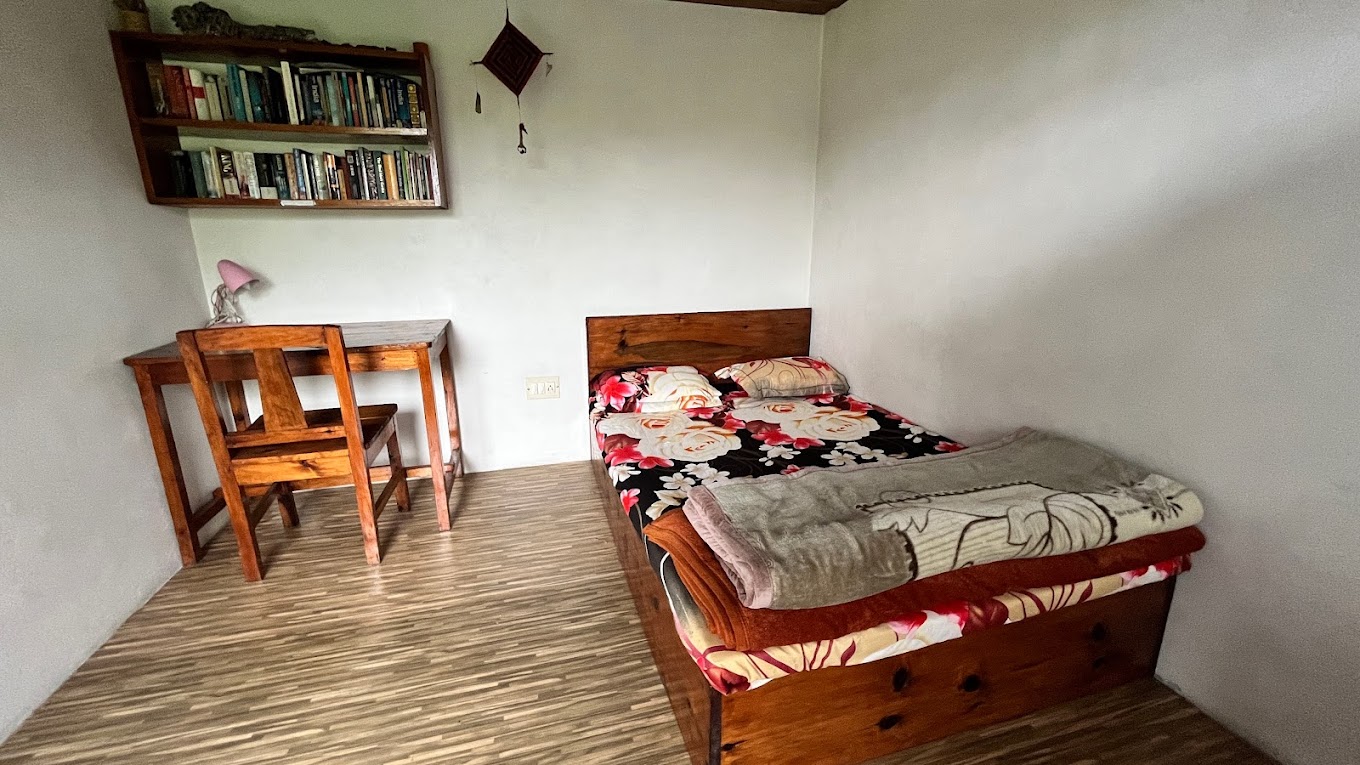 By The Way is a welcoming place for backpackers, located in Lower Cherrapunjee on Dukan Road. It's situated on the main road, just before the Indian Oil Petrol Pump Station and ATM when coming from Shillong. The accommodation includes three rooms: two dorm rooms with three beds each and another single room with a double bed. None of these rooms have attached bathrooms.